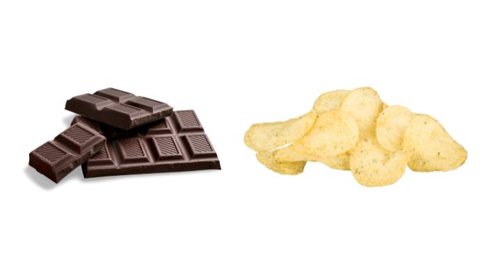 チョコレート、ポテトチップス、ジャンクフードは