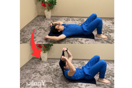 なお、腹筋が弱く背中が上がらない人は、タオルを使って腹筋のトレーニングをしましょう。