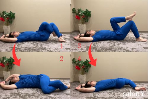 - 両ひざをゆっくりと左側に倒す